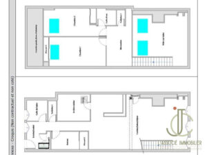 3 chambres possibles (2 et 1/2 actuellement), toute sur cour, 2 salle d'eau, 2 toilettes.DPE D, chauffage gaz + climatisation réversible, copro 10 lots, charges 101 euros mens.